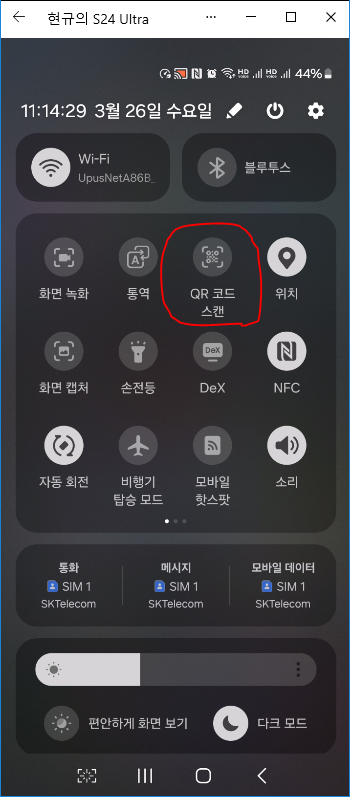 갤러리에 있는 QR코드를 스캔하는 방법문제점:휴대폰 기본 앱인 카메래 앱 또는 카카오톡 더보기 화면에서 QR코드를 읽는 법은 거의 모두 아실 것입니다.그런데 QR코드를 찍은 사진만 있거나 QR코드를 메일이나 카톡으로 받아 갤러리에 저장한 경우에는 이 QR코드를 카메라로 스캔할 수 없기에 난감한 상황이 됩니다. 물론 QR코드를 프린트해서 스캔하거나 다른 휴대폰에 전달해서 그 QR코드를 스캔할 수도 있겠으나 그럴 환경이 안될 경우가 많기에 내 휴대폰만으로 QR코드를 읽을 수 있는 방법을 알아 보겠습니다.해결 방법:해결방법은 두 가지 입니다.첫째, 휴대폰 기본 앱인 카메라 앱을 사용한 방법 1. 휴대폰 화면 상단을 위에서 아래로 쓸어내려 아래와 같이 "QR코드 스캔"을 실행합니다. 2. 아래 화면 우 하단에 ..